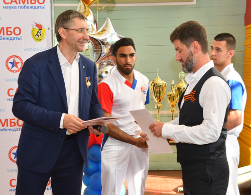 В ходе турнира юные самбисты московского спортклуба "Прометей" были приняты в ряды военно-патриотического движения "Юнармия". Церемонию вручения удостоверений юнармейцев провёл Председатель Ассоциации военно-патриотических клубов ДОСААФ России, Герой России Вячеслав Сивко.