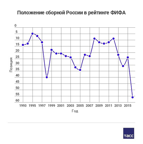 ТАСС проследил динамику перемещений команды по рейтингу ФИФА.