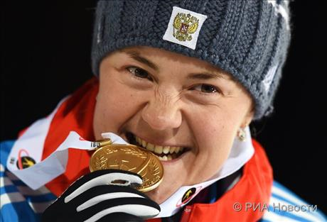 Награждение победительницы индивидуальной гонки чемпионата мира по биатлону Екатерины Юрловой (видео)