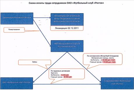 На схеме прекрасно видно, что контракты футболистов, тренеров и других сотрудников "Ростова", включая топ-менеджмент, начиная с 2007 года оплачиваются за счет некоммерческих организаций.