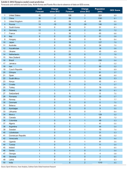 Аналитики одного из крупнейших в мире инвестиционных банков Goldman Sachs Group в своем прогнозе итогового медального зачета Олимпийских игр в Рио-де-Жанейро поместили Россию на четвертое место.