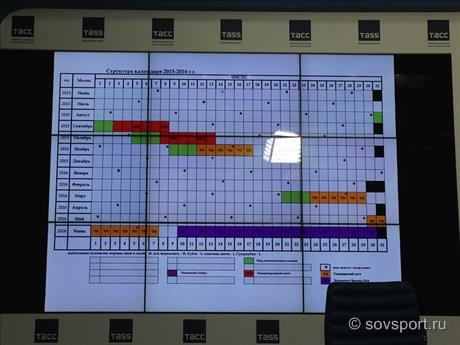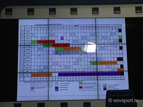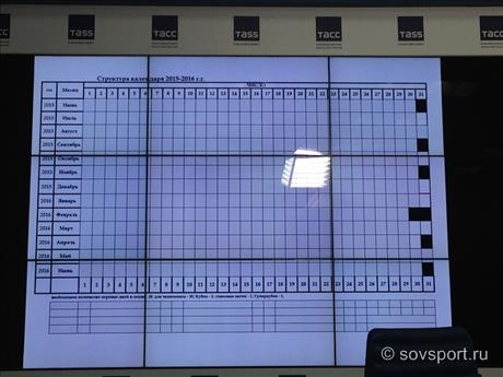 - Вот вы за календарь нас критиковали и правильно делали, - Чебан продолжил пресс-конференцию самым неожиданным образом. - У нас были ошибки, которые пришлось исправлять. Например, действительно плохо, когда клубы проводят серии гостевых и домашних игр, потому что болельщик выбивался из ритма. В этом году мы вернемся к чередованию матчей. И сейчас, чтобы сделать все максимально прозрачно, наш пресс-атташе Сергей Алексеев покажет несколько картинок из истории, как мы создавали календарь. Итак, Сергей... Сергей...