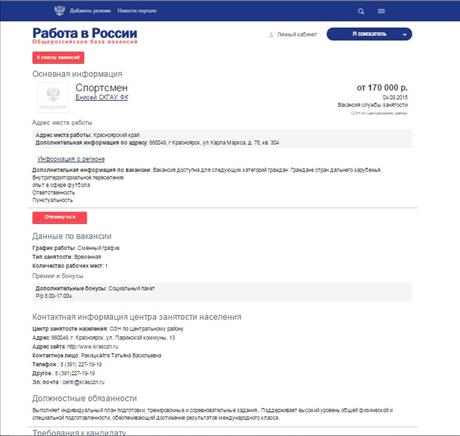 В требованиях к кандидату прописаны: опыт работы в сфере футбола, ответственность и пунктуальность. Работодатель предлагает соискателю социальный пакет и зарплату от 170 тыс. рублей в месяц.