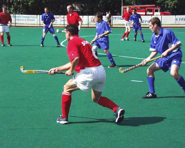 Территория колючей проволоки, больших труб и серьёзно глядящих строений тянется ещё минут десять, вплоть до заветного конца – угрюмой и забытой ремонтом станции Электросталь. Самое трудное позади, остаётся только найти само место действия, значащееся, как муниципальный спортивно-оздоровительный комплекс. Чувствуется, что интерес в городе к хоккею на траве совсем невысок, ибо о Кубке Европы здесь вообще никто не слышал. Но всё-таки пятнадцать минут метаний с программкой по вокзалу не прошли даром, и вежливый кондуктор маршрутки очень даже по-русски объяснил мне, как пройти до нужного места: до первого светофора и налево. Оказалось, что это совсем недалеко (спасибо местным жителям). У входа на стадион прохожих встречала охрана, а я, как назло в спешке забыл аккредитацию. Тут мне помогла смекалка и солнечные очки. Вклинившись в ряды сборной Швейцарии (благо одет был во всё красное), я с невозмутимым видом прошёл мимо последней преграды, сойдя за игрока.