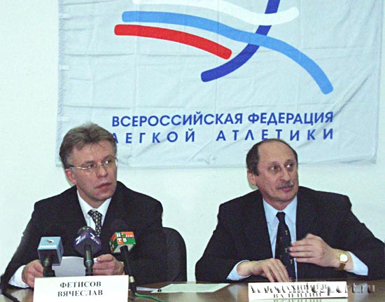 На пресс-конференции присутствовали председатель Госкомспорта России Вячеслав Фетисов, президент Федерации лёгкой атлетики Валентин Балахничёв, главный тренер нашей сборной Валерий Куличенко, победители и призёры мирового первенства, личные тренеры спортсменов.