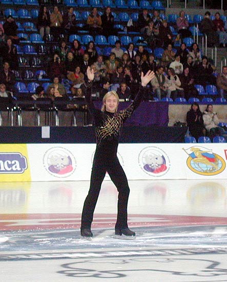 Второе золото в копилку России принёс король современного мужского фигурного катания Евгений Плющенко, ради выступления которого пришло большинство зрителей. В прокате произвольной программы он допустил несколько ошибок. По словам Евгения, виной этому стало его больное колено, которое не даёт ему кататься в полную силу. После завершения сезона Плющенко собирается лечь на операцию.