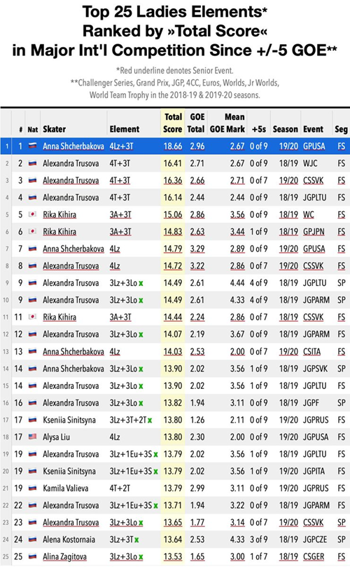 В произвольной программе на Skate America 15-летняя спортсменка прыгнула каскад четверной лутц — тройной тулуп, получив рекордные 18,66 балла. Это самая высокая оценка за какад в женских соревнованиях в истории вида спорта, сообщает Skating Scores.