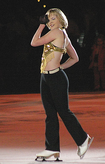 Евгений Плющенко подарил зрителям, наверное, свой самый знаменитый показательный танец на композицию «Sex Bomb» Тома Джонса. Женю четыре раза зрители вызывали на бис (рекорд вечера).