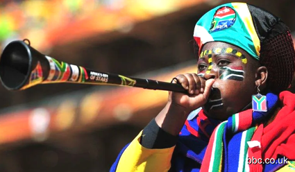 Вувузела - длинный рожок из Южной Африки, получивший широкую популярность во время чемпионата мира по футболу в ЮАР в 2010 году. Из-за громкого монотонного звука вувузелы с тех пор были запрещены на многих спортивных состязаниях по всему миру.