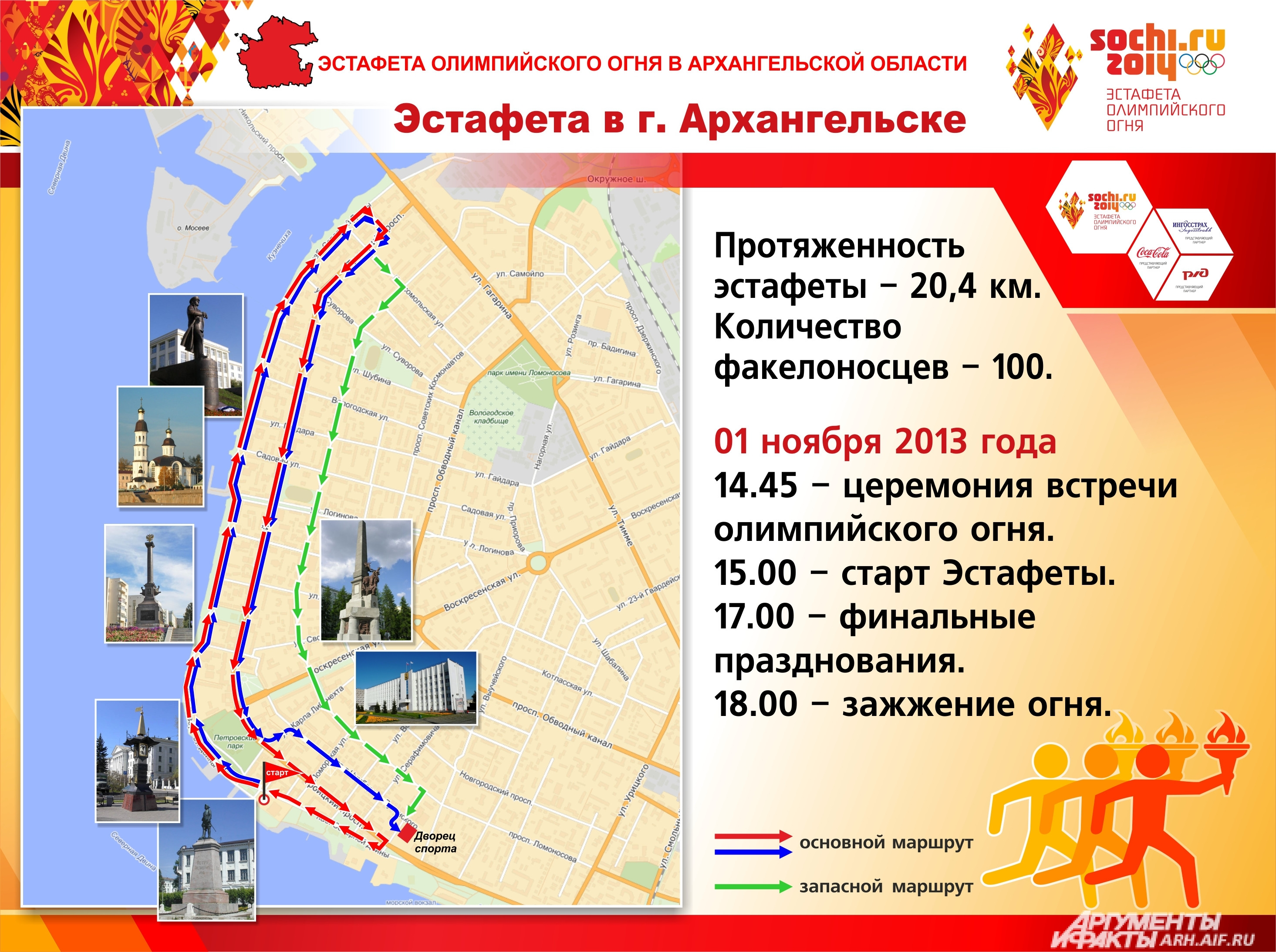 Список факелоносцев эстафеты олимпийского огня в Архангельске: