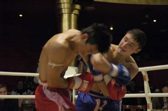 "RAMTL" профбои РЛМТ: Омич Куанш Абулов боксирует против соперника из омского СК "Сиам" (тренер Юрий Дюрдь) в андер-карде Чемпионского боя Аджиниязов-Юнусов в Омске в Центре спортивных развлечений 2 декабря 2005 года.
