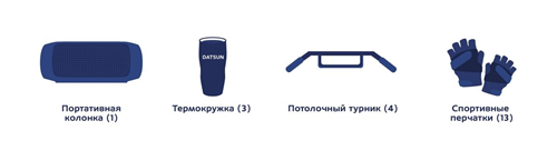 Помимо главного приза, разыгрываются также портативная колонка, брендированные потолочные турники, спортивные перчатки, фирменные кружки Datsun, которые будут вручены двадцати одному участнику, чьи конкурсные работы по итогам оценок жюри окажутся лучшими.