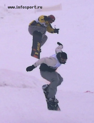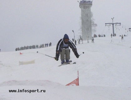приползал на руках всего лишь третьим или четвертым. С большим преимуществом финальный заезд у мужчин выиграл главный тренер сборной России по бордер-кроссу Денис Тихомиров. Самой сильной среди женщин стала Голованова Ольга.Вслед за сноубордистами на эту трассу вышли участники ски-кросса. Это то же самое что бордер-кросс, только на лыжах. Естественно скорости в этом виде программы были значительно больше, а прыжки выше и длиннее, чем в сноуборде. Некоторые лыжники умудрялись буквально пролетать финишную линию после последнего трамплина. И здесь первые два места распределились, так же как и в могуле. Первым стал уже победитель этих игр Иванов Андрей, второй Знаменский Иван, третьим и четвертым стали Галаничев Александр и Ипатов Леонид