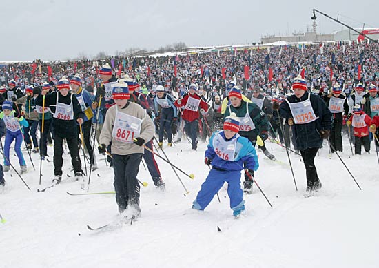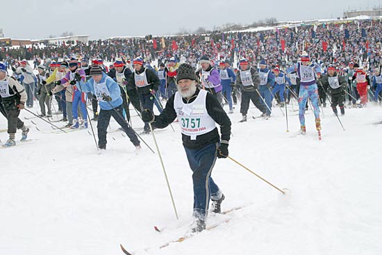 «Лыжня России» - соревнование уникальное. Ну, где ещё можно увидеть на трассе председателя Госкомспорта России Вячеслава Фетисова, президента ОКР Леонида Тягачёва, министра труда и социального развития Александра Починка, лидера ЛДПР Владимира Жириновского, многократную олимпийскую чемпионку в беге на лыжах Елену Вяльбе?