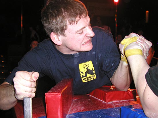 Правда, чемпионы, учитывая свой статус, заявились в более тяжелые весовые категории. Двукратный чемпион мира в наилегчайшем весе, студент университета кино и ТВ Александр Соколов выступал в категории до 73 кг. А чемпион мира прошлого года в полусреднем весе Роман Гадлевский из Электротехнического университета выступал в полутяжелом весе. И хотя молодые рукоборцы не дали метрам легкой жизни, оба чемпиона подтвердили свой статус.