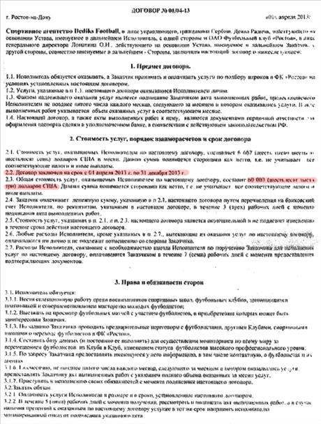 Данную схему подтверждают трудовые договоры бывшего футболиста "Ростова" Деяна Радича. В договорах сербского голкипера прекрасно видно, что заработная плата футболиста по трудовому договору составляет 15 тыс. рублей в месяц.