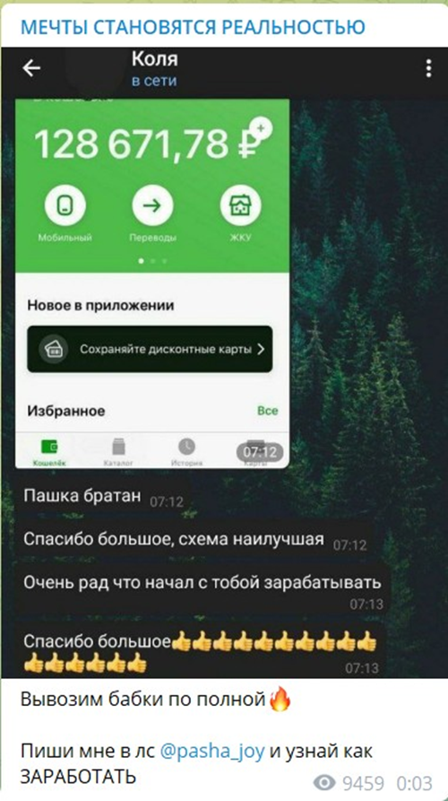 Рисунок 3. Вклады на телеграм канале МЕЧТЫ СТАНОВЯТСЯ РЕАЛЬНОСТЬЮ