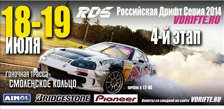 18-19 июля 2014 года на автодроме "Смоленское кольцо", г. Дорогобуж, Смоленская область, пройдет 4 этап всероссийских соревнований по дрифту "Российская Дрифт Серия" 2014. Впервые профессиональные соревнования по дрифту, с участием лучших пилотов из России, Латвии, Украины и Белоруссии пройдут на "Смоленском кольце".