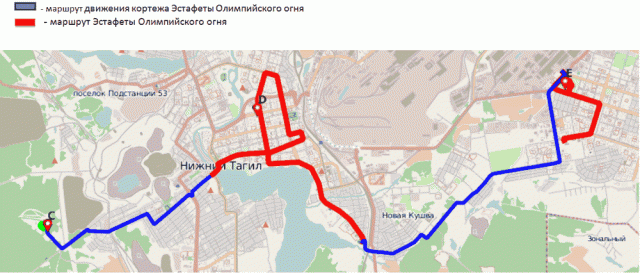 Длина маршрута эстафеты олимпийского огня в городе составит 17 километров и охватит три района города – Ленинский, Тагилстроевский и Дзержинский. В эстафете примут участие 90 факелоносцев.