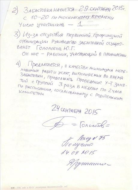 Также руководство школы заявило, что объявленная Юрием Гололобовым голодовка является незаконной и может повлечь за собой расторжение трудового договора.