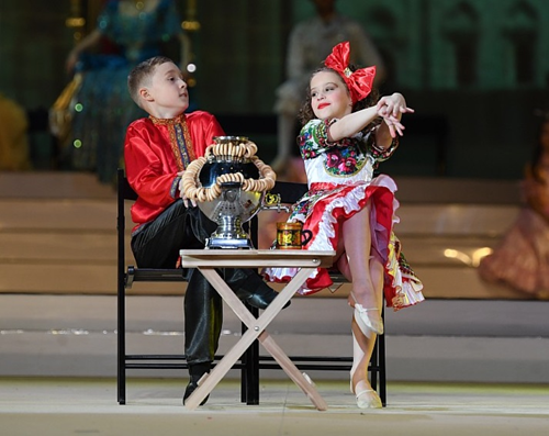 Со своими ролями придворных фрейлин прекрасно справились и воспитанницы Академии Ирины Винер – Алмазова Дарья и Ильюхина Мария. Воспитанницы Академии Ирины Винер (сборная школ Москвы №№ 705, 323, 1253, 1534, 1507; Центра образования №1953 "Москва -98" ; школа № 27 г.Химки М.о.) групп художественной и ритмической (мужской) гимнастики исполнили великолепную постановку хореографов Любови Ломакиной и Яны Зингель.