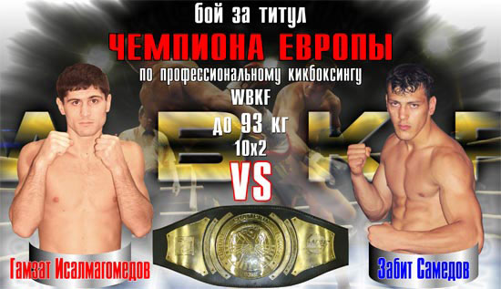 Обладателю пояса Чемпиона Европы, Чемпиону Мира 2004г по кикбоксингу (WAKO), Чемпиону Мира 2001 по тайскому боксу, Победителю Кубка Европы 2001г по тайскому боксу (IFMA) Забиту Самедову по прозвищу «Маугли» (Белоруссия, г.Минск) предстоит защита титула.