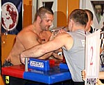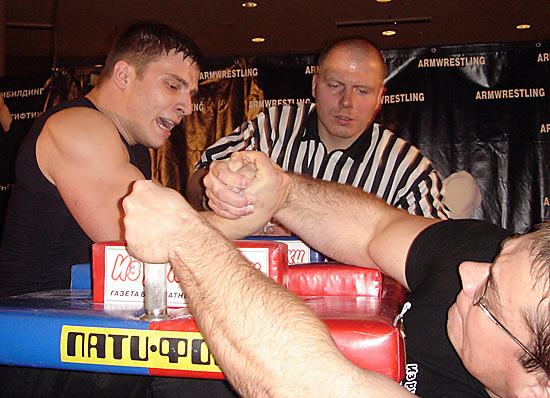 Но на правых Дзамболат смог удержать стартовый рывок претендента. Хотя сделал он это в опасной близости от поверхности стола, но Цориев смог переломить ход поединка и прижать правую руку своего грозного противника к столу.