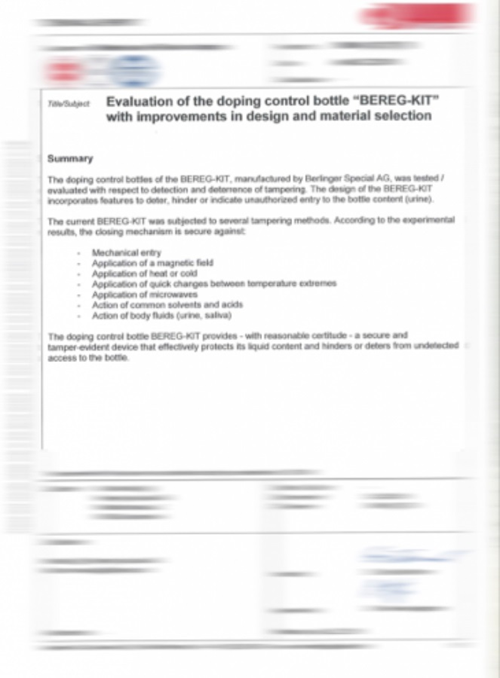 В источниках по антидопингу встречаются упоминания лаборатории Sulzer Innotec AG, Switzerland, но только применительно к пробиркам Berlinger для крови. Возможно, эта лаборатория делала экспертизу и по спорным пробиркам для мочи. Попытка Berlinger умышленно скрыть фирму-аудитора говорит о том, что Макларен скорей всего прав. В пользу возможности вскрытия говорит и то, что фирма Berlinger тайно получила от WADA информацию об уязвимости и доработала пробирки к Рио.