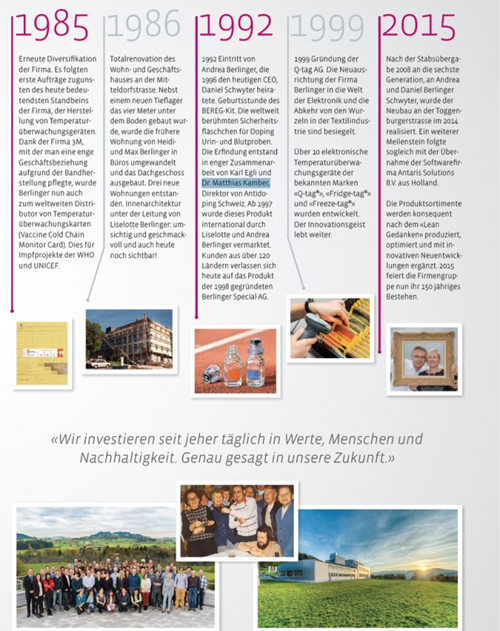 О других патентах Карла Эгли ничего неизвестно. С чего это на него снизошла "пробирочная муза"? Загадка. Но с этого момента текстильная фабрика уверенно набирает обороты на созданном WADA рынке специфической стеклотары. Наивно полагать, что у этого успеха нет заинтересованного покровителя. В рекламных материалах Berlinger соавтором изобретения назван Маттиас Камбер (Matthias Kamber). Возможно это он продвигает продукцию Berlinger?