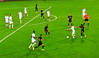 "Быки" предпочитали ловить соперника на быстрых выпадах. А первый гол "пришёл" со стандарта. Ленини "бахнул" со штрафного, Латышонок почему-то отбил кожаную сферу перед собой, а Кобнану легче было забить, чем промазать – он же не Соболев.