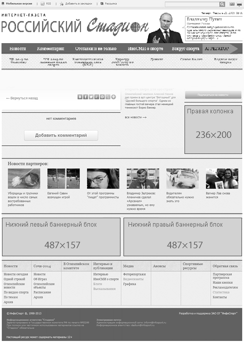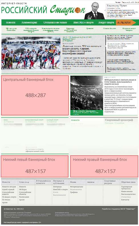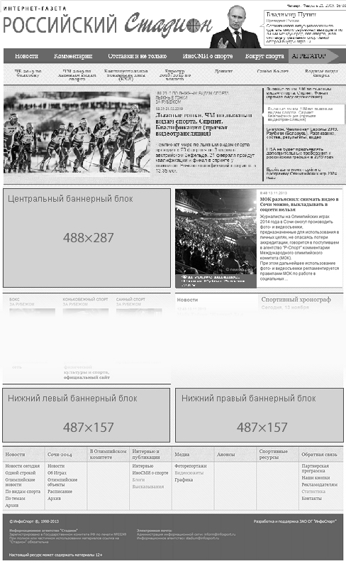 Схема размещения баннеров на страницах интернет-газеты "Российский Стадион"